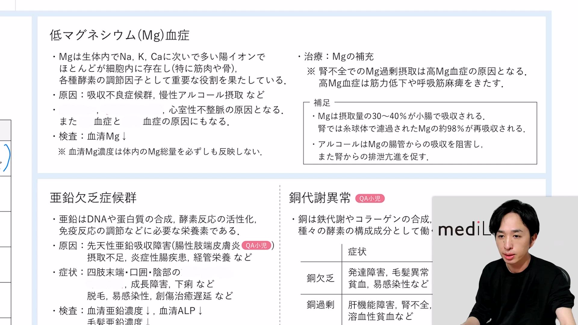 低Mg血症・亜鉛欠乏症候群・鉄代謝異常