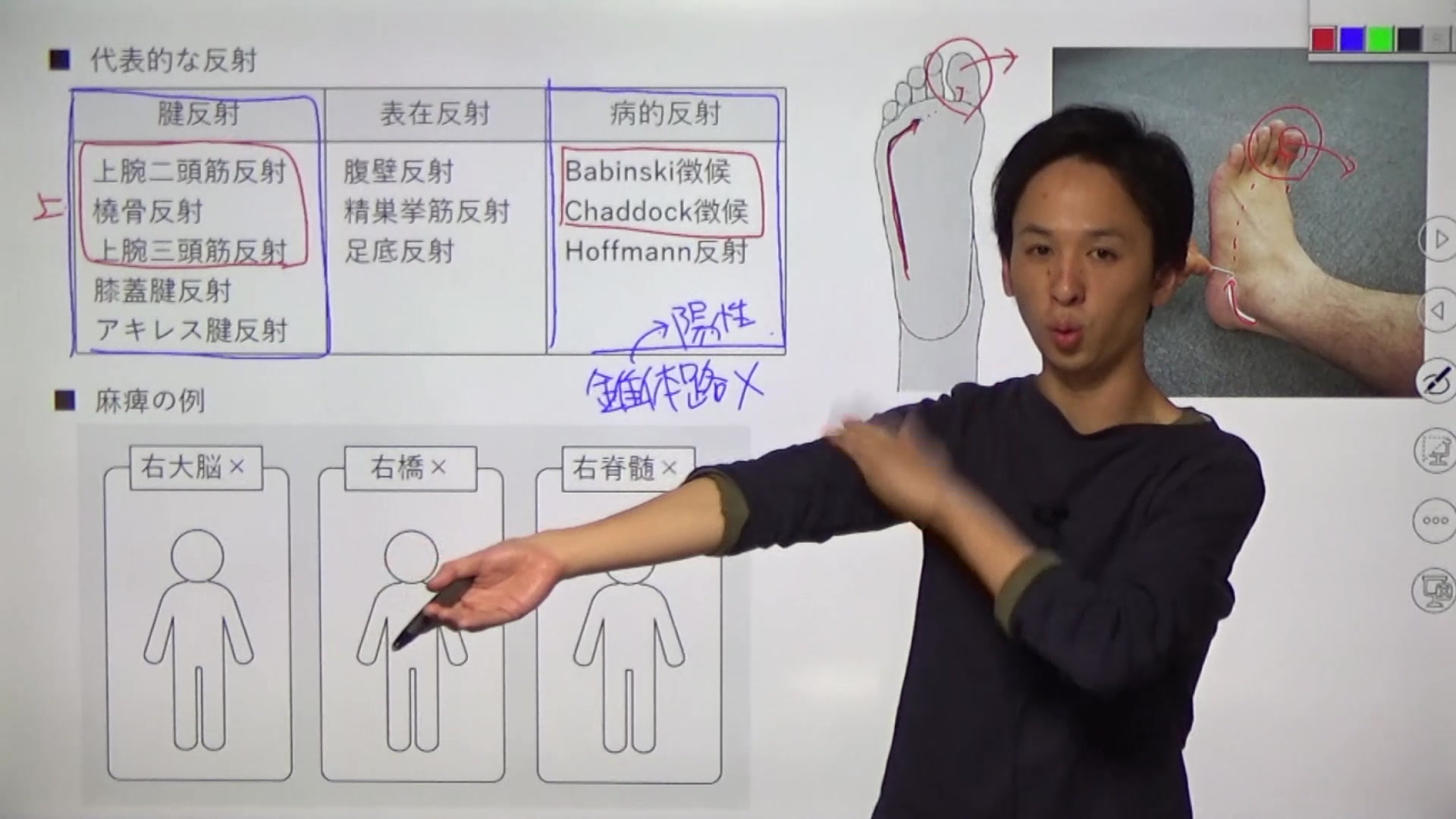 反射,麻痺の例,運動調節の異常