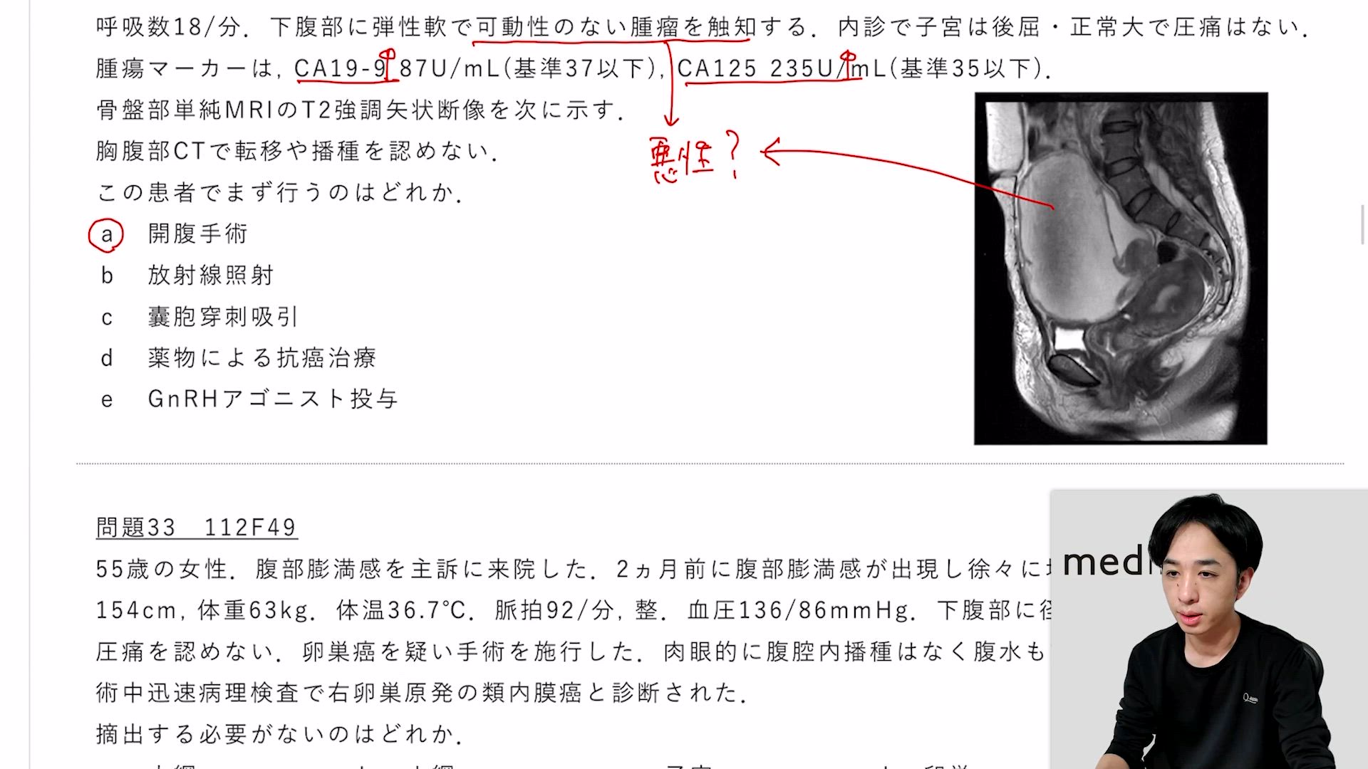 卵巣腫瘍の臨床像・診断~治療までの流れ+問題31~32