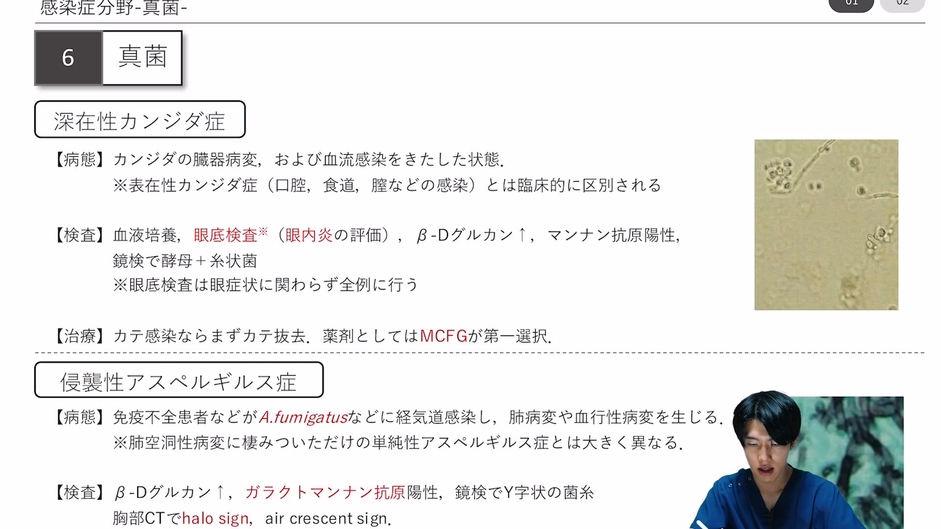 真菌(深在性カンジダ症,侵襲性アスペルギルス症,クリプトコッカス,ニューモシスチス)