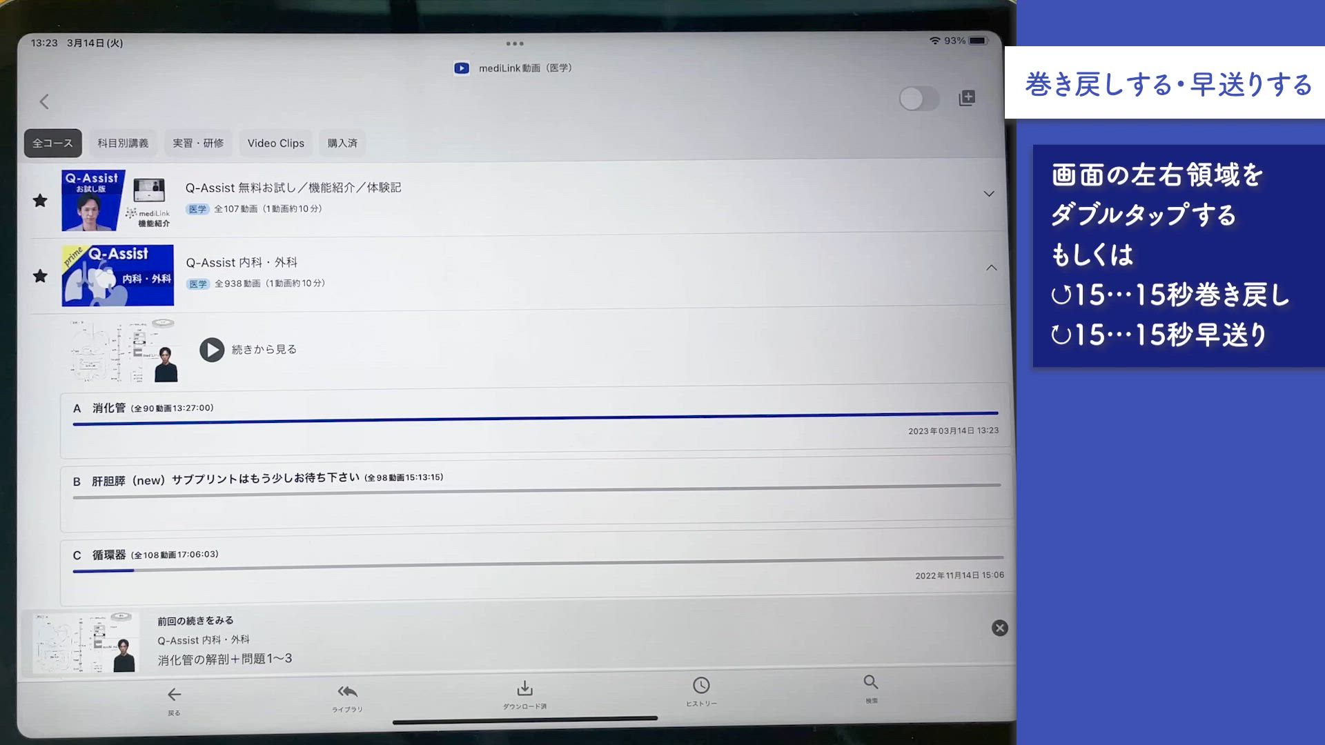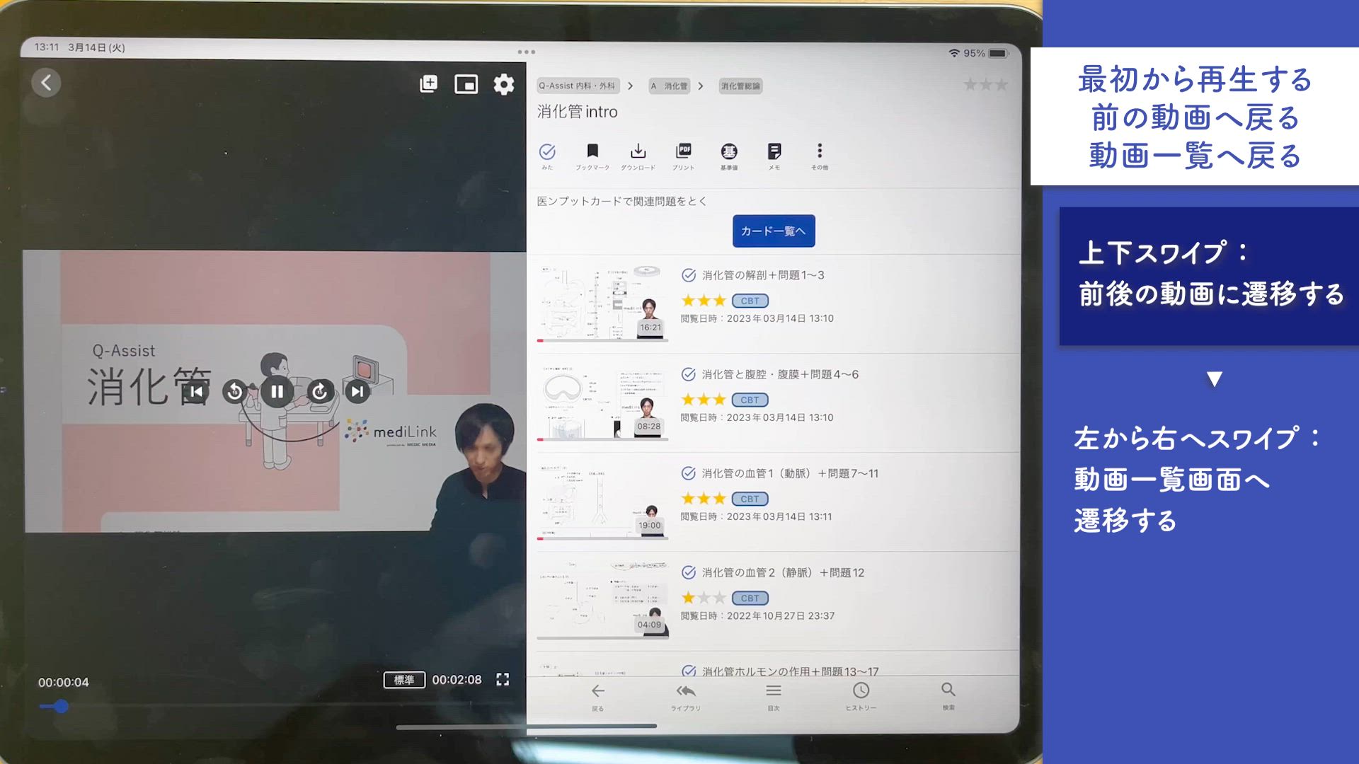 最初から再生する/前の動画へ戻る/動画一覧へ戻る