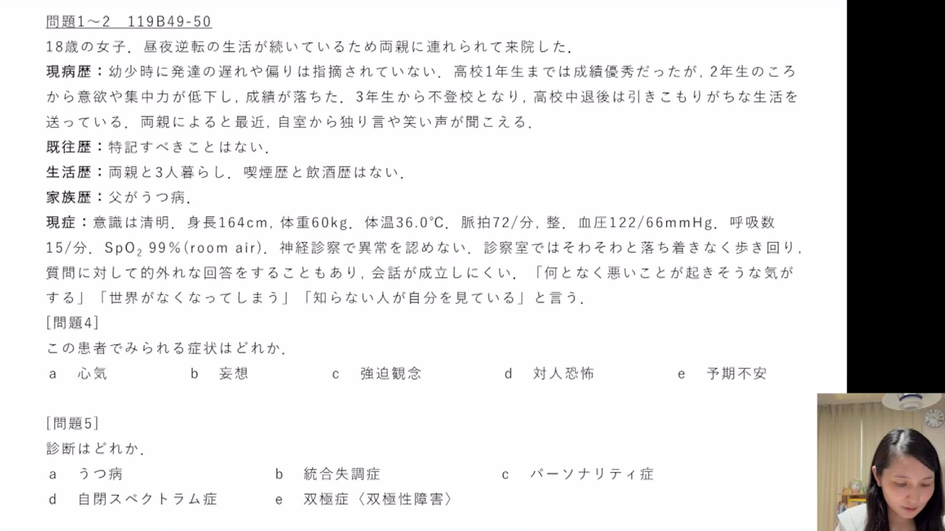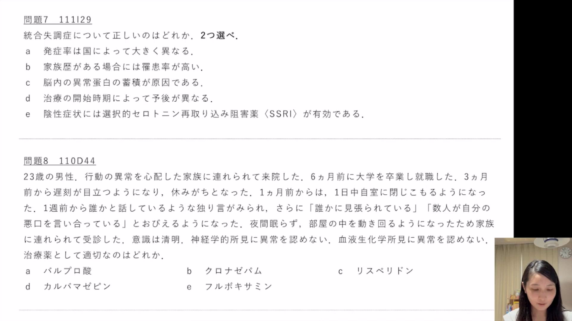 統合失調症のその他の治療と予後・妄想性障害 問題11〜13